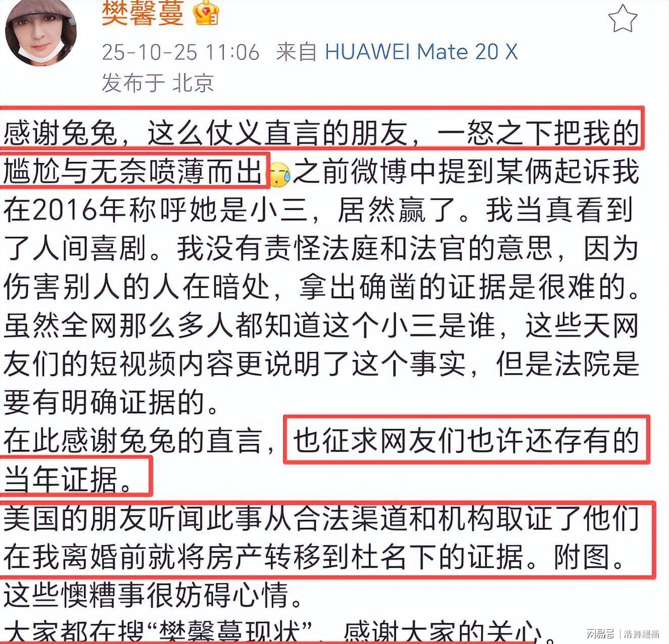 樊馨蔓多次公开指责张纪中婚内偷吃,2025年中旬,更是抛出重磅消息,称张纪中在两人尚未离婚时就已开始偷偷转移财产,涉及金额不小于3亿。