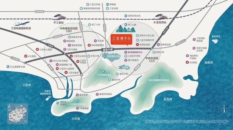 项目位于迎宾路CBD组团,集旅游、休闲、度假、养生、医疗、娱乐六维一体的综合度假区,四湾之上、三亚之心,辐射三亚湾、大东海、亚龙湾、海棠湾,坐享海南自贸港政策红利。