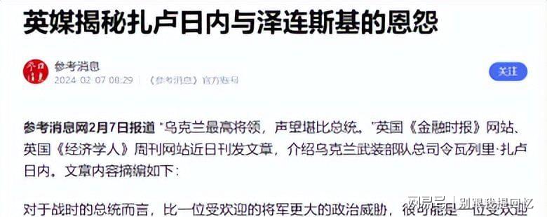参考消息《英媒揭秘扎卢日内与泽连斯基的恩怨》