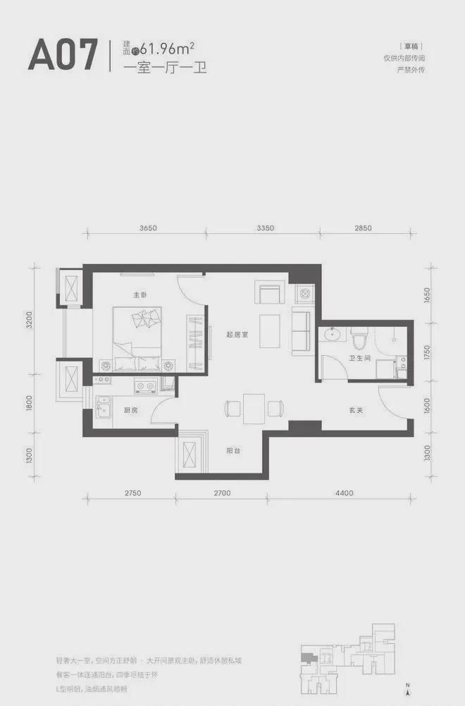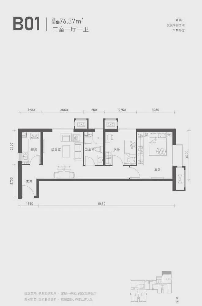户型建筑面积区间:建面约56-102㎡,一居、两居