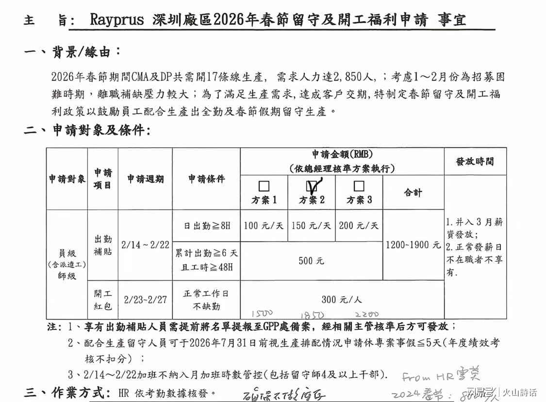 而网传浙江宁波部分工厂给留守员工发生产奖。有些企业春节期间提供免费的加餐,如丰富的年夜饭、日常的水果、点心等,并发放加餐补贴费用,让员工自行购买喜欢的食品。