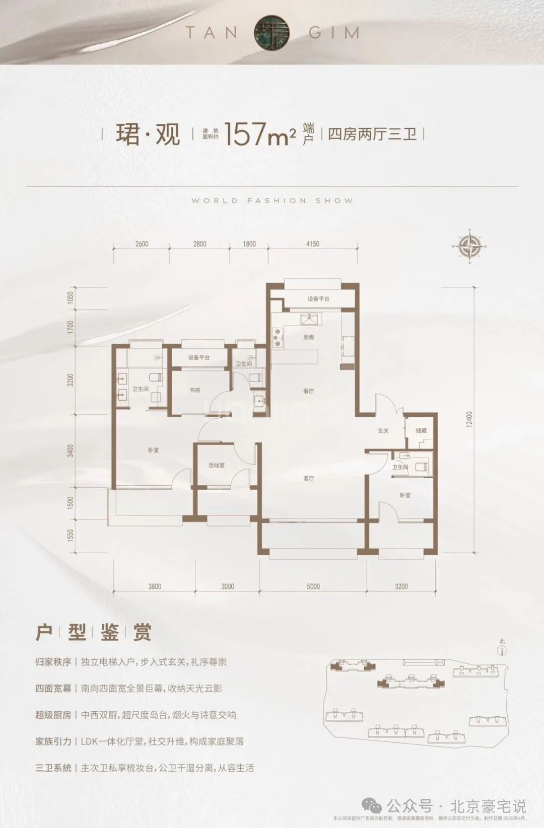 157㎡阔境四居:终极改善首选,南向四面宽设计,超大餐客厅连通阳台,视野开阔无遮挡,主卧配备独立衣帽间与奢华卫浴,细节处尽显高阶质感,满足家庭全周期居住需求。