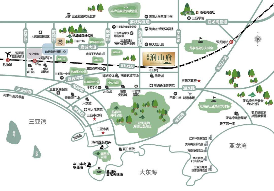 鹿城·润山府位处三亚教育资源集中区域,1.5公里范围内覆盖十五年全程优质教育配套,从琼大国际幼儿园、南亚幼儿园、三亚第三幼儿园等近十所幼儿园,到南新小学、荔枝沟小学、荔枝沟中学、巴蜀中学、华侨学校,以及西南大学三亚中心、热带海洋学院等等,从幼儿启蒙到学业进阶全程护航孩子远大梦想与锦绣前程。