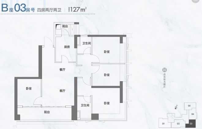 A02/A05/B03户型,122-127㎡,4房2厅2卫