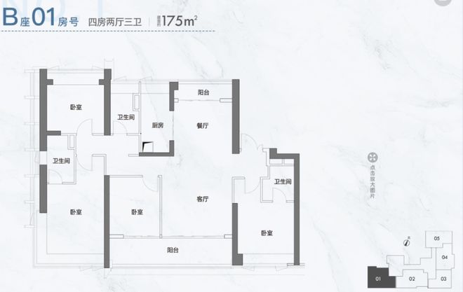 B01/02户型,174-175㎡,南北通4房2厅3卫