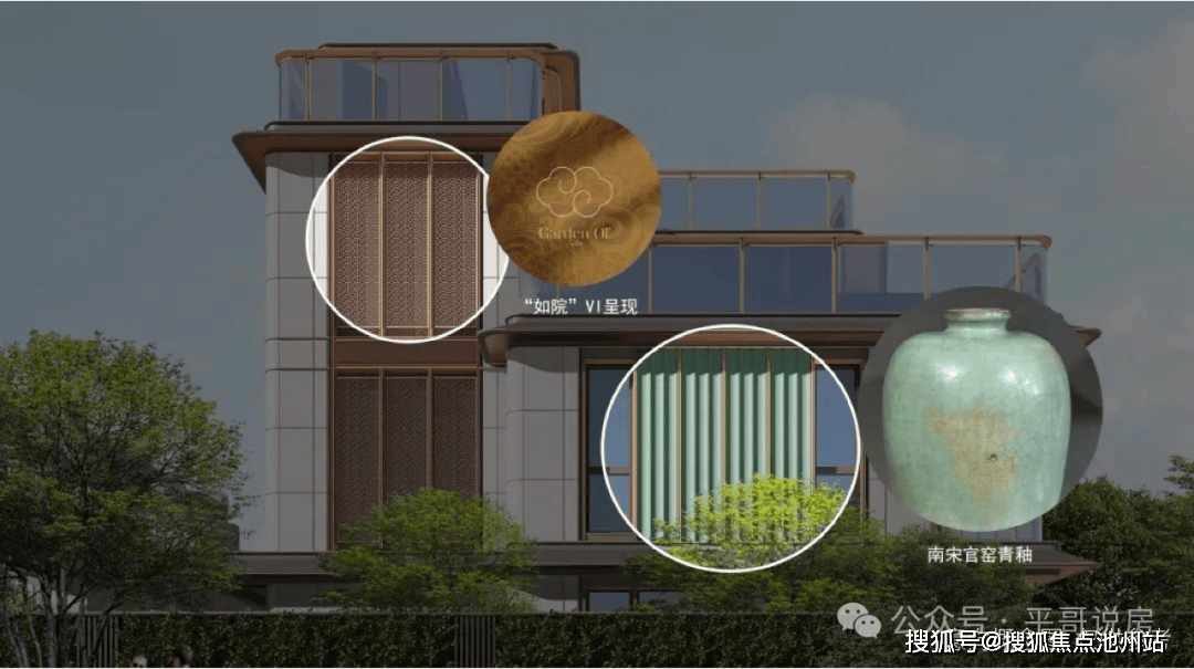 ✅建筑设计采用现代东方风格融合宋韵美学与现代摩登手法,色彩搭配上,延续东方建筑的典雅质朴,以温暖色调与自然木色为主调,青绿色陶板作为点缀,提升色彩饱和度,尽显东方美学韵味。