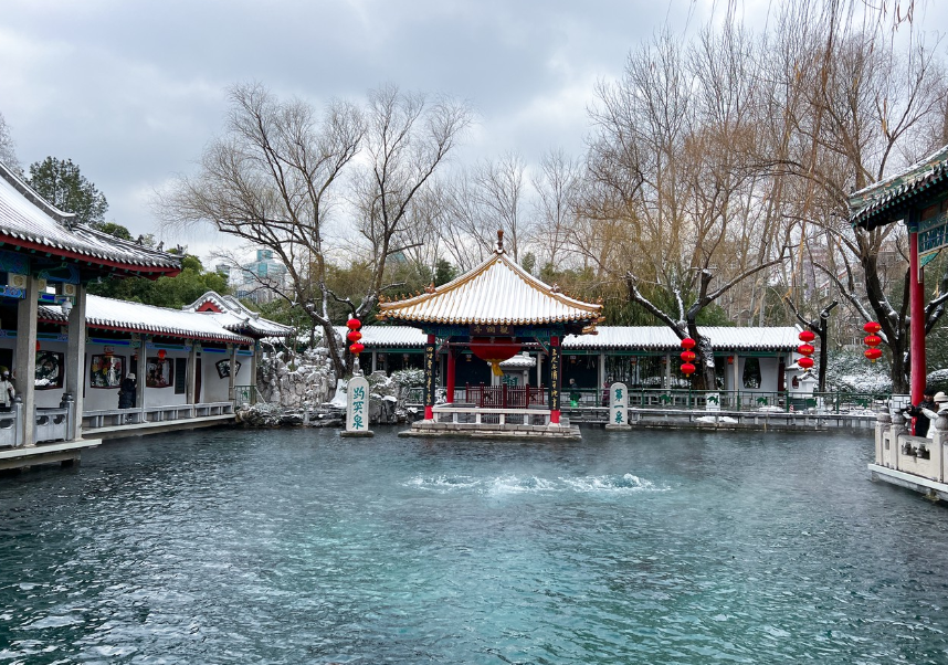 清晨,我们来到了天下第一泉风景区——趵突泉。冬日的趵突泉,少了几分夏日的喧嚣,多了几分宁静与诗意。泉水与冷空气碰撞,升腾起袅袅云雾,缠绕在泉眼与亭台之间,仿佛置身于缥缈仙境。导游告诉我们,趵突泉的泉水常年恒温18℃,即使在寒冷的冬天,也能感受到泉水的温暖。我们沿着泉边漫步,欣赏着泉水中的锦鲤,感受着泉水的灵动与生机。在趵突泉西侧的万竹园,我们还欣赏到了江南园林与北方庭院的融合之美,园内的“三绝”石雕、木雕、砖雕,尽显匠心独运。