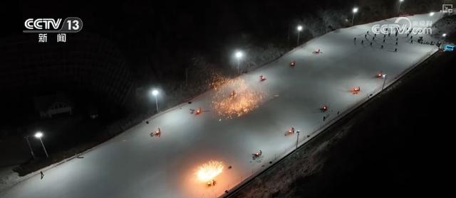 晚上6时,赤峰冰雪狂欢季在雪场上火热开启。12组非遗打铁花在雪道两侧齐绽,30名滑雪爱好者手持火把飞驰而下。随后,百人焰火方阵绽放,点亮冰雪夜空。