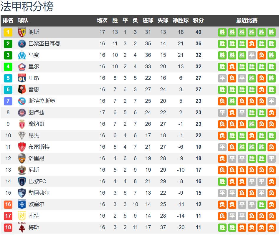 法甲第17轮,朗斯先赛,客场拿下图卢兹,本赛季联赛13胜1平3负积40分,领先第二名巴黎多达4分,这意味着朗斯已经获得了法甲本赛季的半程冠军(法甲18队,一赛季就是34轮)。朗斯17轮法甲仅丢了13分,即使多赛一场,也依然是法甲本赛季至今丢球最少的球队。