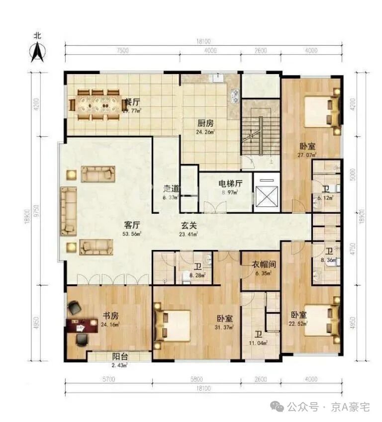 350㎡四室两厅一厨四卫一家政间