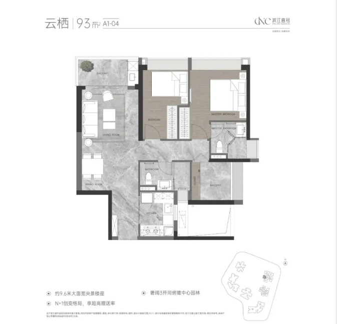 项目虽体量不大,但在户型设计上独具匠心。采用 “新中式合院” 设计理念,通过 30 度楼体扭转,有效优化楼间距与采光效果。面积区间为 90 - 132 平,涵盖三至四房户型,部分户型带入户花园、宽景阳台,提升居住舒适度与空间利用率。外立面选用灰白高定材质,并搭配 2.9 米巨幕玻璃,营造出独特的东方美学风格。此外,项目使用率高达 90%,在同类项目中优势明显,为业主提供了更为宽敞舒适的居住空间。