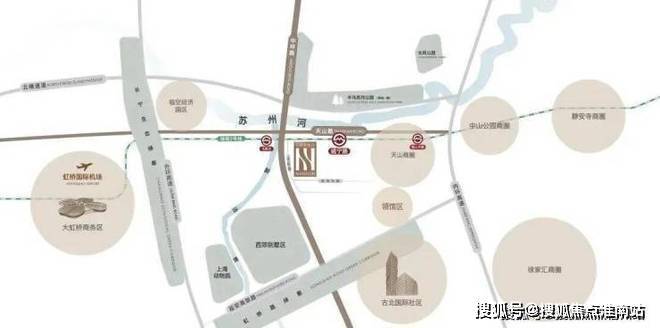 【地铁2号线】直线距离威宁路站约800m,北新泾站约300m,东向2站中山公园,4站静安寺,6站人广,9站陆家嘴,直抵浦东国际机场,西向3站虹桥2号航站楼,4站虹桥火车站,是上海名副其实的国际线。