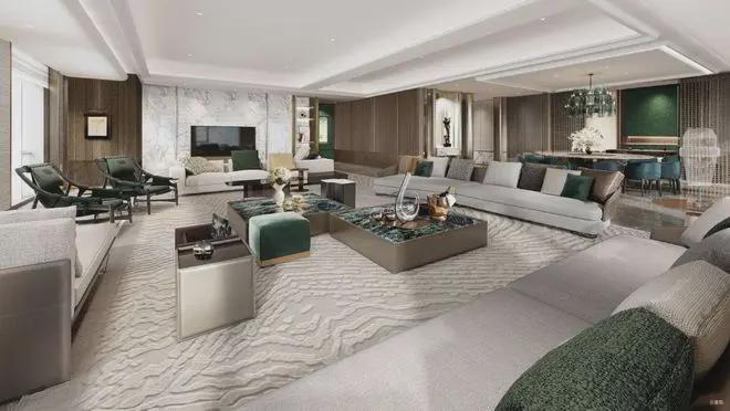 真正的奢侈,是目之所及与未现传奇的共臻完美。室内空间荟聚全球奢石,肌理如泼墨的塞埔路斯灰、凝练月光的芬迪白、蓝调夜色浸染的芬迪蓝、古典雅致的希腊白木纹和远古绿……每一片奢石皆是自然天成的艺术藏品。