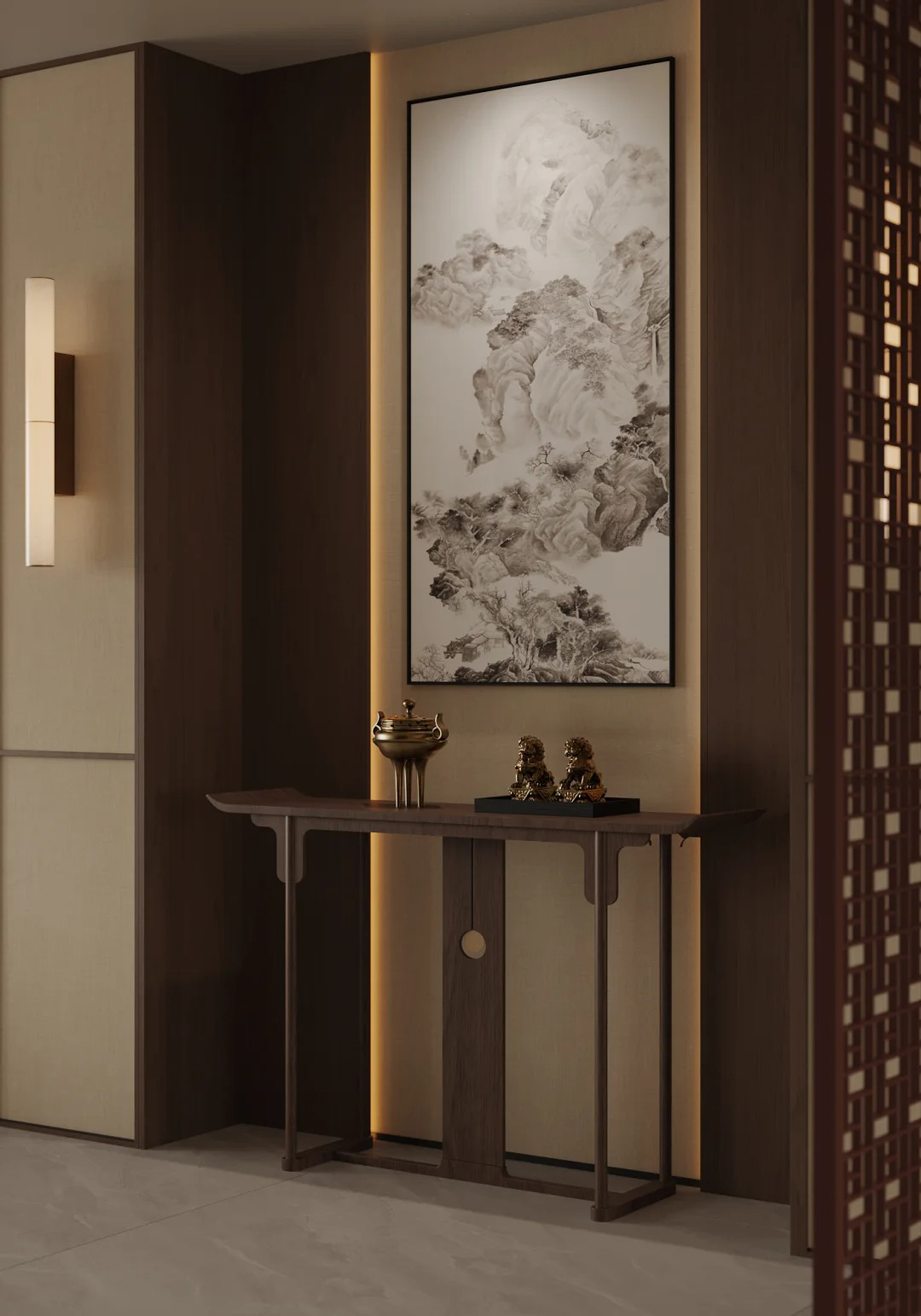 在这方小小玄关里,藏着的,是家主人的审美,是中式文化的温度,是我们千年来骨子里的“分寸感”。