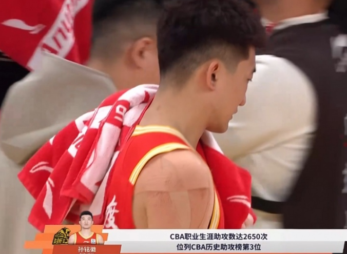孙铭徽CBA生涯总助攻数赛前是2647次,距离郭艾伦(2649次)仅差2次,本场完成超越升至CBA历史助攻榜第3位。