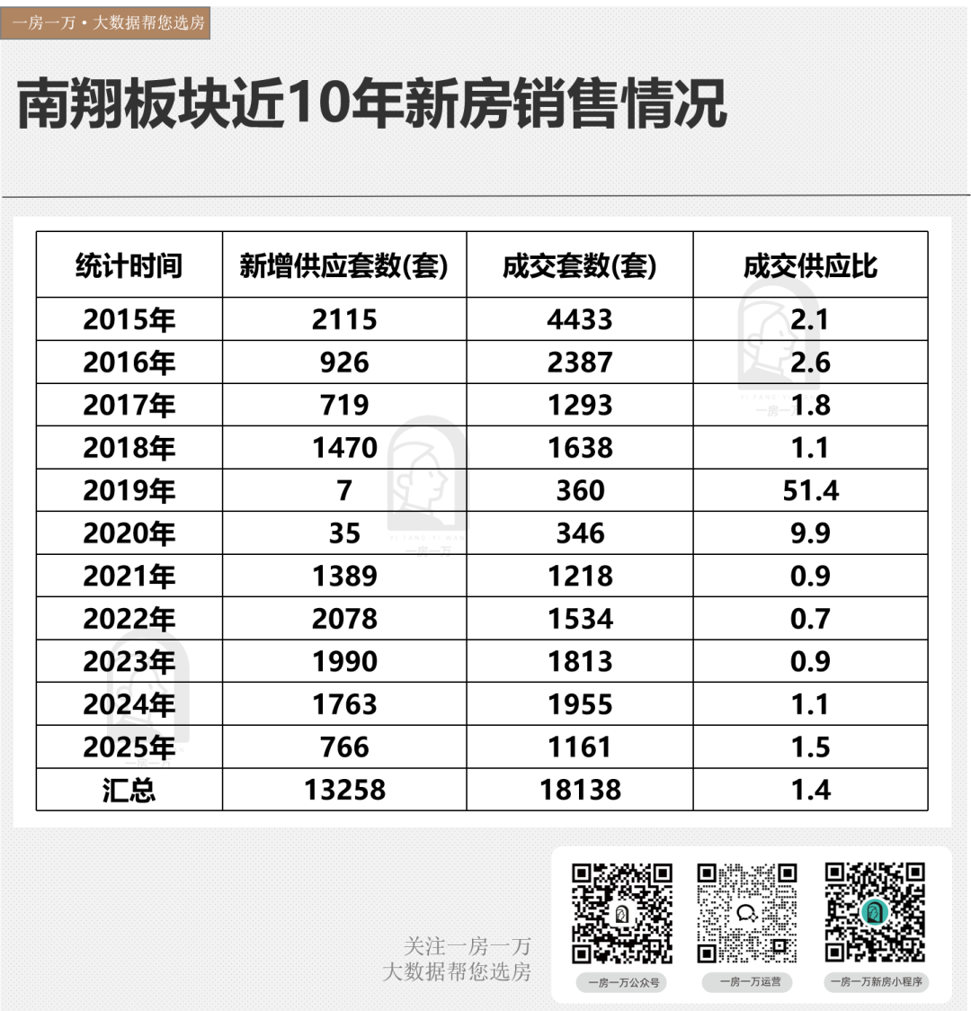 在11年的时间里,除了个别年份出现了供大于求的情况,在绝大多数情况下,南翔的新房去化情况都相当优秀。