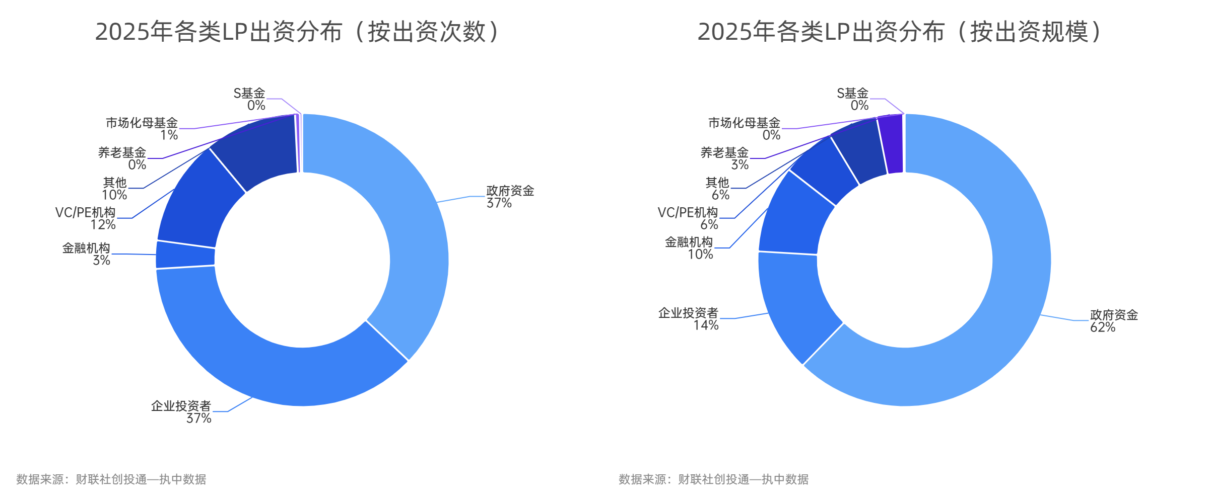 若考虑LP的资金属性,国资控股的LP出资次数占比约60%,出资总额占比达89%,较2024年比例进一步提升。