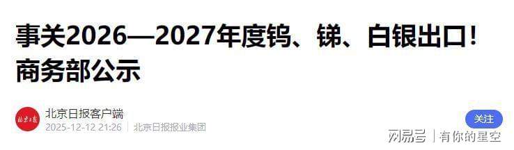 中国白银出口管控新政落地,一记重拳改写全球市场格局!商务部最新公告明确,2026年具备白银出口资质的企业仅44家,较去年的42家仅微增2席。