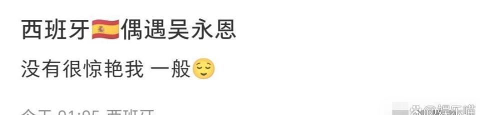 直到2025年底,才有人在西班牙偶遇他。 发帖的人说,看见吴永恩了,一身黑,戴着墨镜。 “也就那样吧”,这是路人的评价。