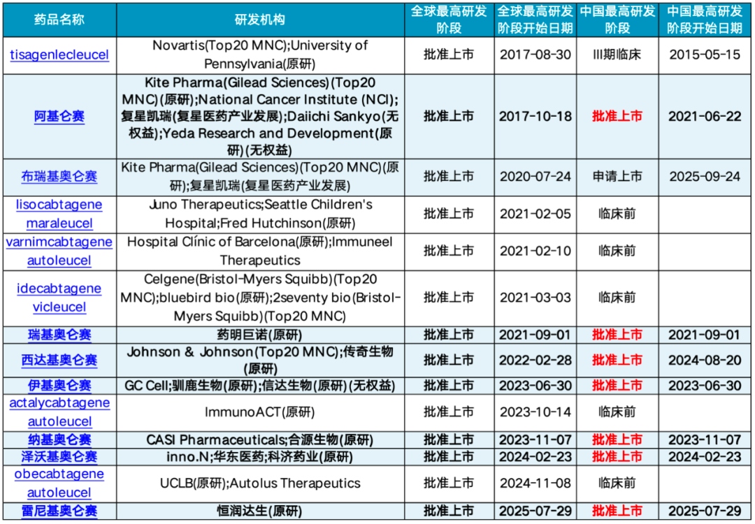 表4. 全球CAR-T竞争格局