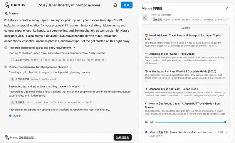 同时,Manus还能可视化界面增强“真人工作感”,让用户能够实时观测AI的网页浏览、代码编写等操作过程。