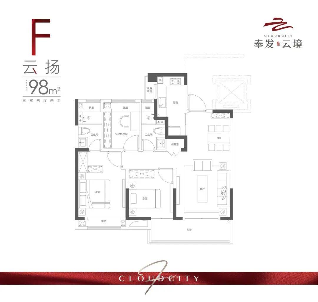 奉发云境主打建面约73-141㎡的2-4房户型,满足不同家庭需求。户型设计科学合理,空间利用率高。如73㎡两房采用无过道设计,配备双卫;96㎡三房多飘窗设计,延展视觉尺度,餐客一体增强家庭互动;138㎡四房则拥有约13.4米南向四开间,独立电梯前厅,主卧步入式衣帽间,满足多代同堂需求。所有户型均精装交付,配备日立中央空调、方太厨电、科勒卫浴等一线品牌,品质有保障。