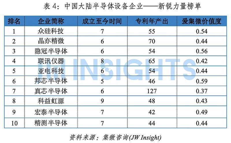 中国大陆半导体设备领域企业——新锐力量榜单