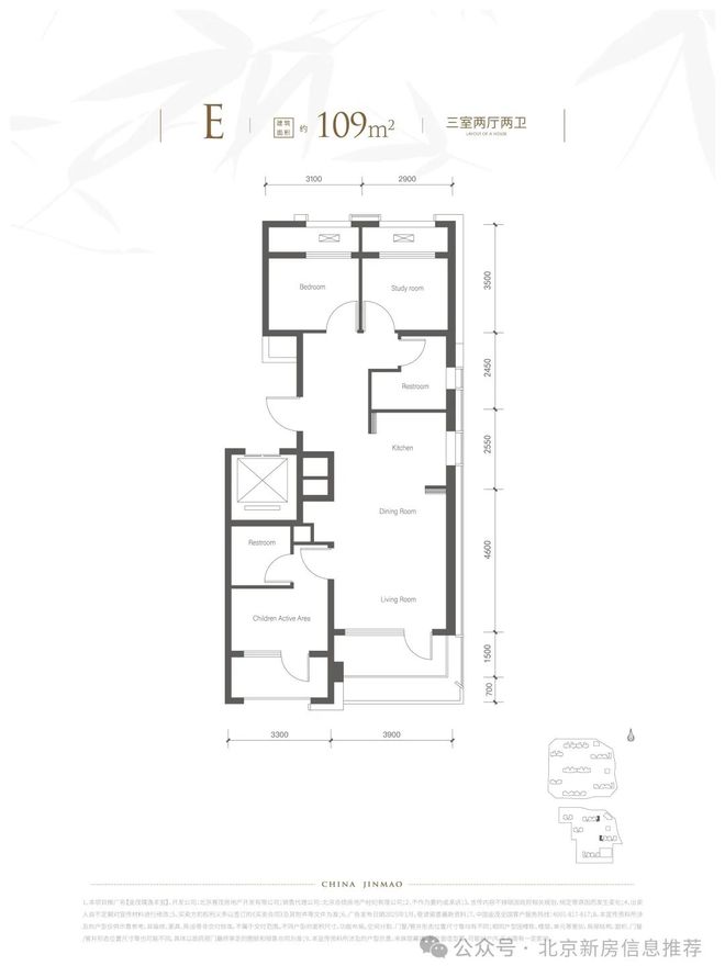 E户型 109㎡ 三室两厅两卫