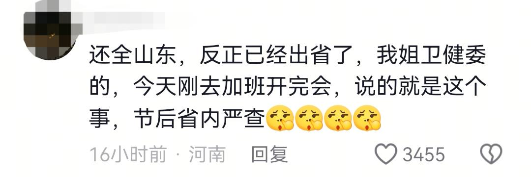 而且,女孩的行为坑了整个行业。有一位河南的网友说,因为这件事情,他们当地直接加班开会,要节后省内严查,过年前的周末全没了,都安排好卫健委的工作人员下沉到各个医院四不两直检查。