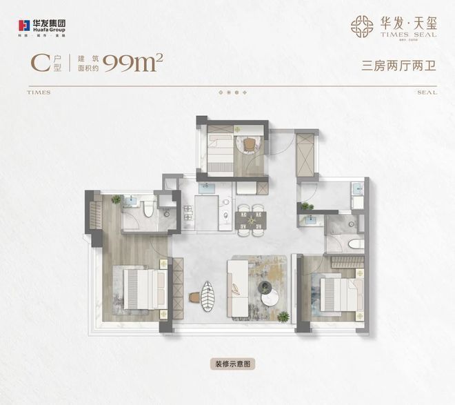 户型面积:建筑面积约99/114㎡ (新规产品,相当于传统建筑面积约120-150㎡户型)