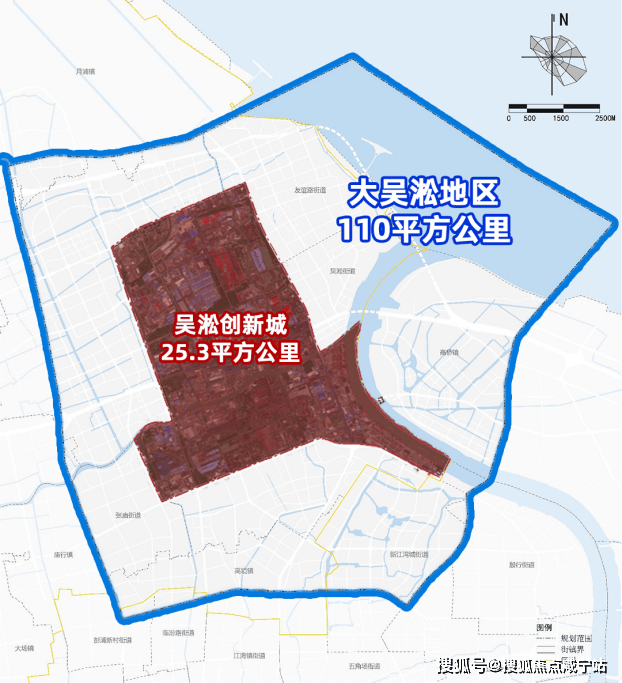 扩容后的大吴淞地区的规划面积为110平方公里,其中长江、黄浦江水域面积约22平方公里;横跨宝山、浦东、杨浦和静安四大行政区,包括宝山的淞宝、杨行(大部分)、张庙、淞南、高境(大部分),以及杨浦区的新江湾城,浦东新区高桥镇三岔港部分,静安区部分区域,未来将引进常住人口约100.6万人。