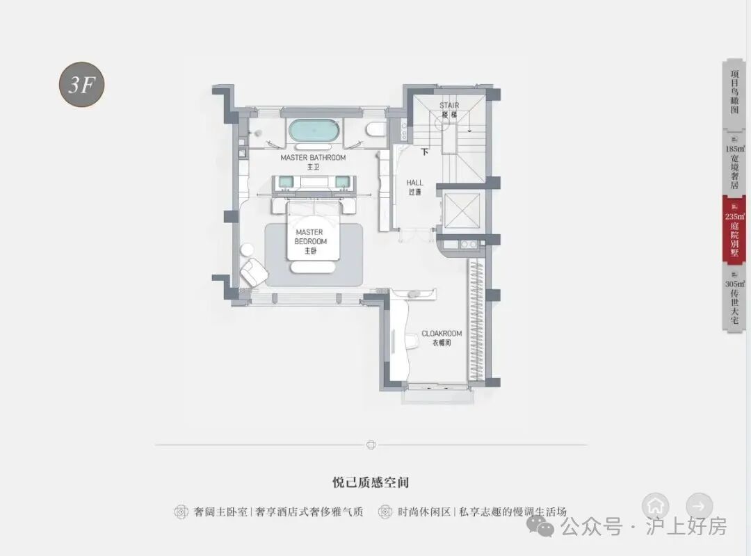 - 主力户型为184㎡、235㎡、305㎡的联排与叠加别墅,含独立庭院、露台及地下室。