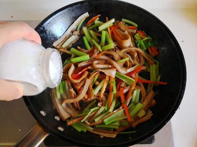 4. 再加入少许盐调味,最后放入少许水淀粉勾芡即可。