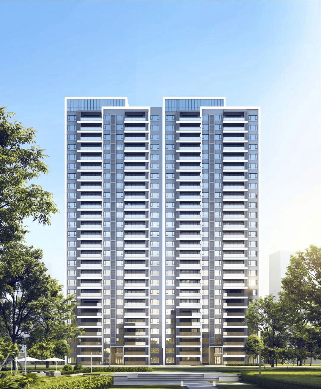 【高端典雅立面】以米白色、灰色涂料搭配银色、金色局部金属铝板,超越时代审美;