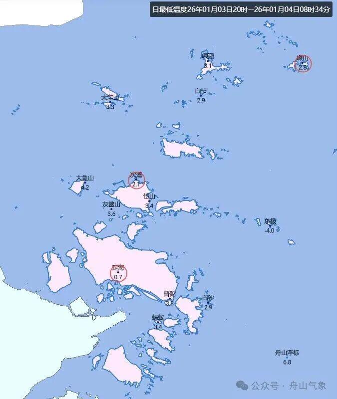 据舟山气象,全市晨间最低气温仅0.7℃(定海)。