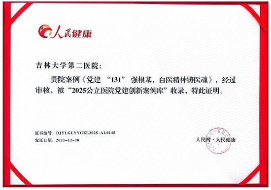 2025年12月28日,吉大二院受邀参加“2025党建引领公立医院高质量发展调研交流会”,活动现场正式发布了全国公立医院党建创新案例暨案例库入驻名单,吉大二院案例在众多参评案例中脱颖而出,被人民网“公立医院党建创新案例库”收录。