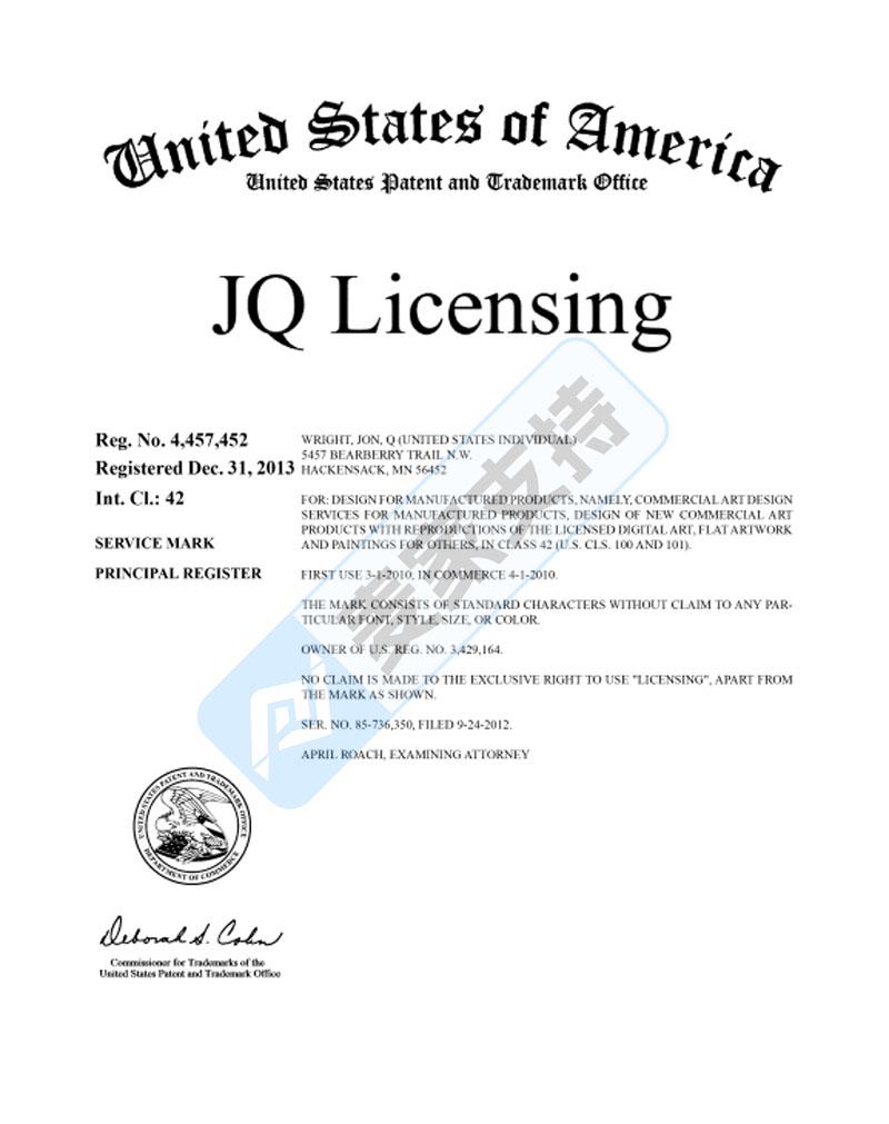 品牌方:Jon Q. Wright and JQ Licensing, LLC
