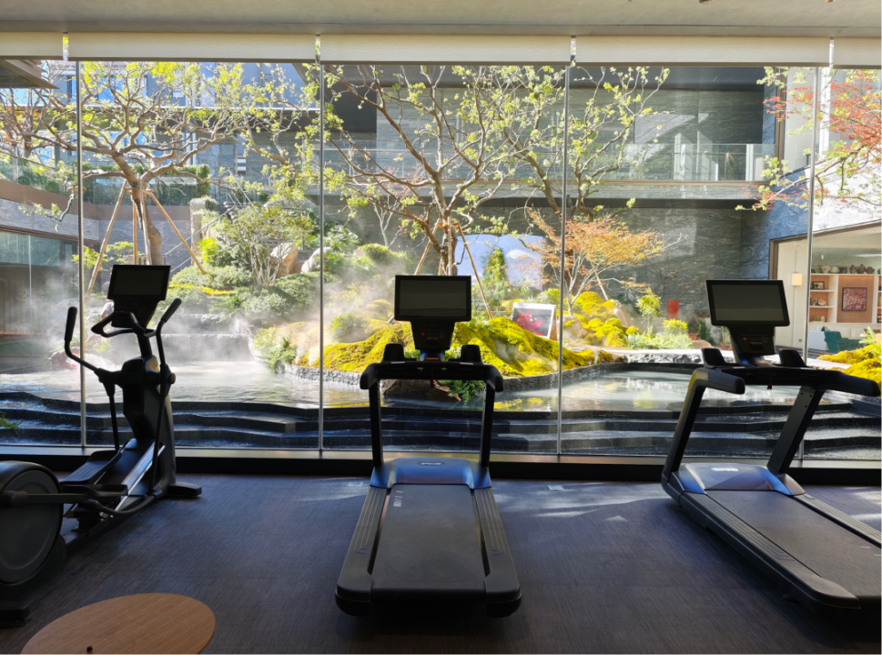 健身房:配备来自全球顶级奢侈品牌——美国的必确(Precor)的顶级健身器械,整面落地玻璃引入庭院景观,让运动如同在自然中漫步。值得一提的是,每一个跑步机面对的玻璃都是对着正中。