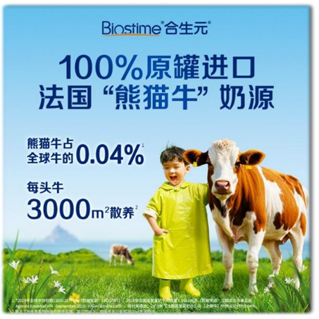3.奶源品质保障:优选法国诺曼底“熊猫牛”等珍稀奶源,这些牛种采用0激素、不催乳的养殖方式,产出的牛奶天然富含OPO、LPN等初乳营养。