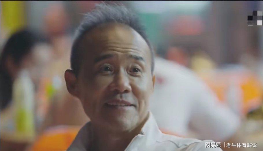 王石穿一件黑色西装,围着大大的红围脖,看上去特别喜庆。