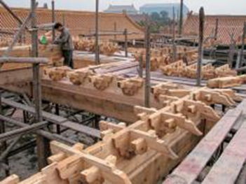 北京故宫中正殿修缮:层叠而上,柱额相交于一个平面。赵鹏 摄