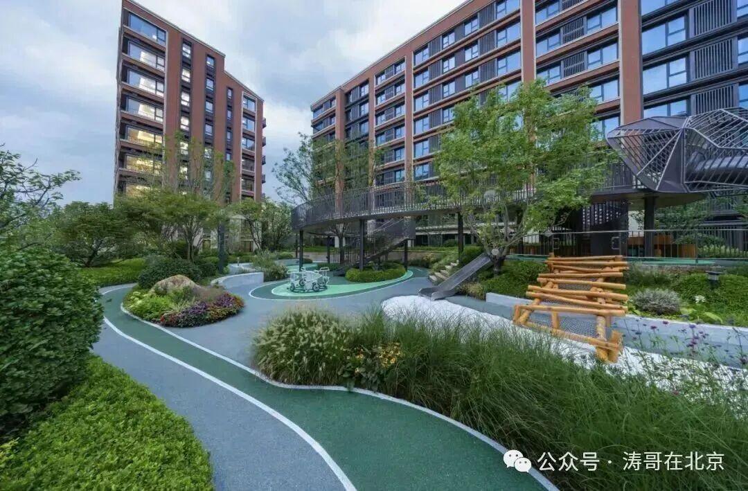 “满庭芳”花境里,白玉兰与丁香散发着淡淡香气;而“树语童心”乐园里,美国红枫与山桃树环绕着“森林厨房”,藏进孩子的玩乐日常。