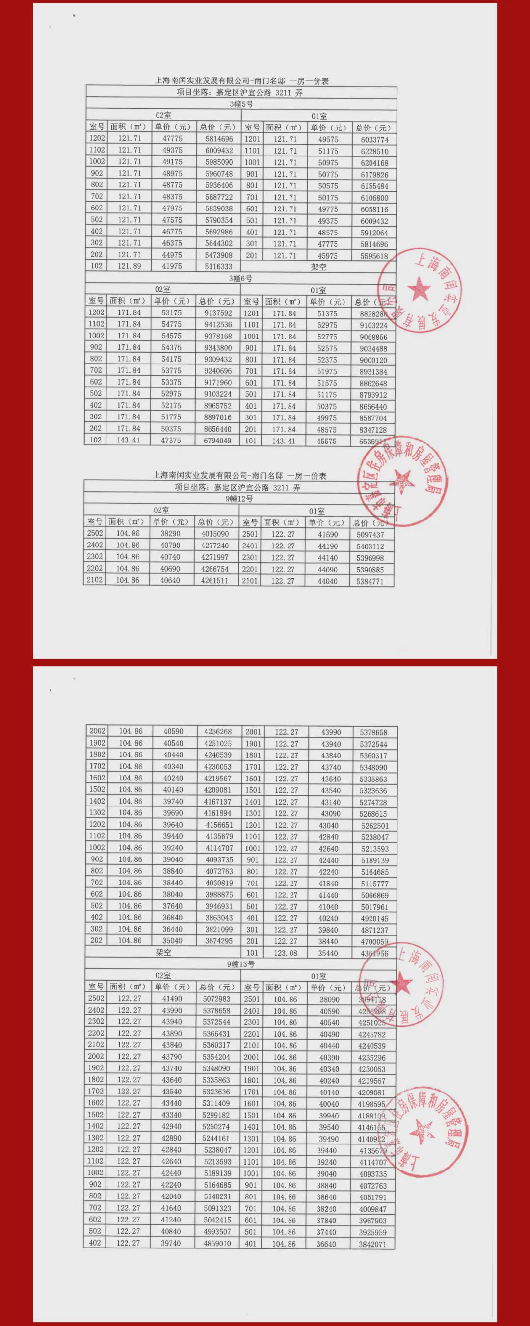 一房一价表: