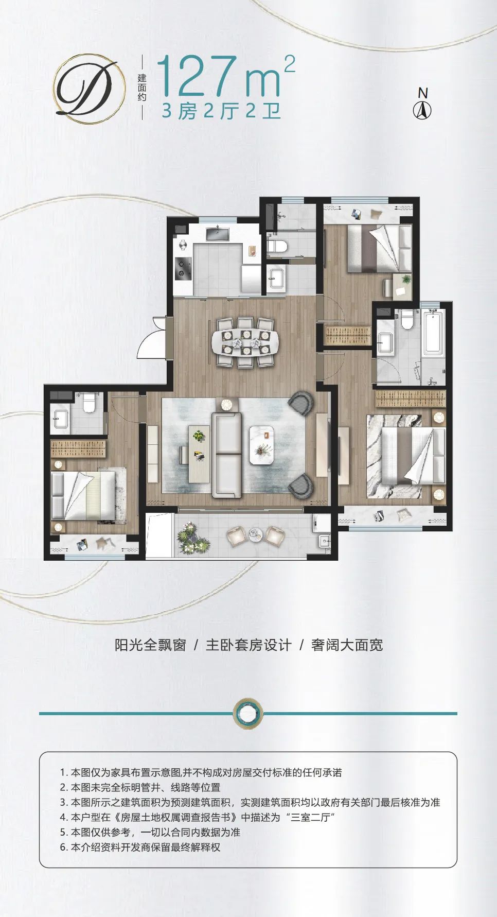 建面约127㎡3房户型