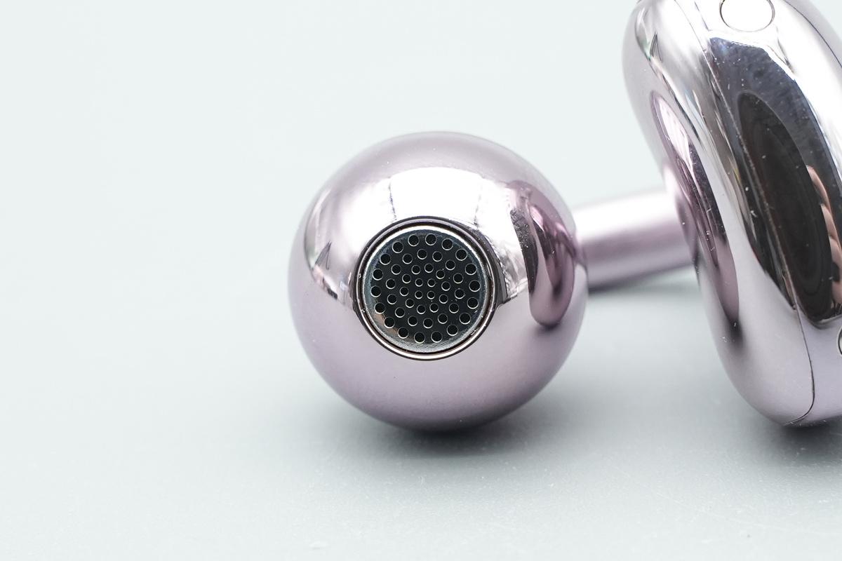 耳机腔体采用亮面质感,整体光滑圆润,后侧腔体内侧采用弧面设计,更加贴合耳廓,佩戴舒适。