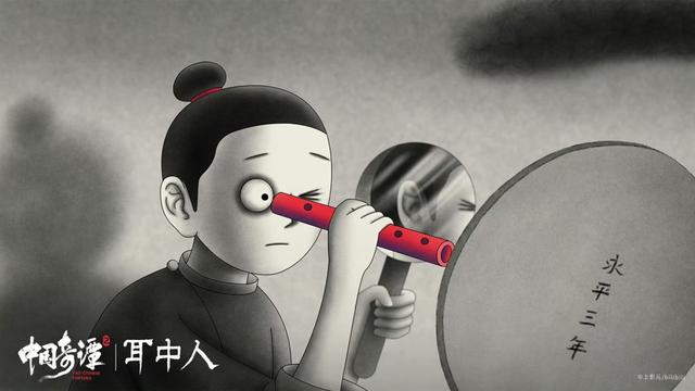 《耳中人》奇趣诡谲。导演胡睿又一次向《聊斋志异》找寻灵感。《耳中人》脱胎于卷一中的同名篇章,又跳出传统叙事框架,发展为探讨内心欲望的现代寓言。胡睿说,在搜集创作素材时关注到了“傀儡戏艺人”这一传统形象,“旧时有一种艺人住在戏台里,表演与生活合一,试图用戏剧解决一切问题”。受之启发,动画中的主人公谭秀才也被设计成这样“疯魔”的人物,借助戏曲舞台与耳中人周旋。
