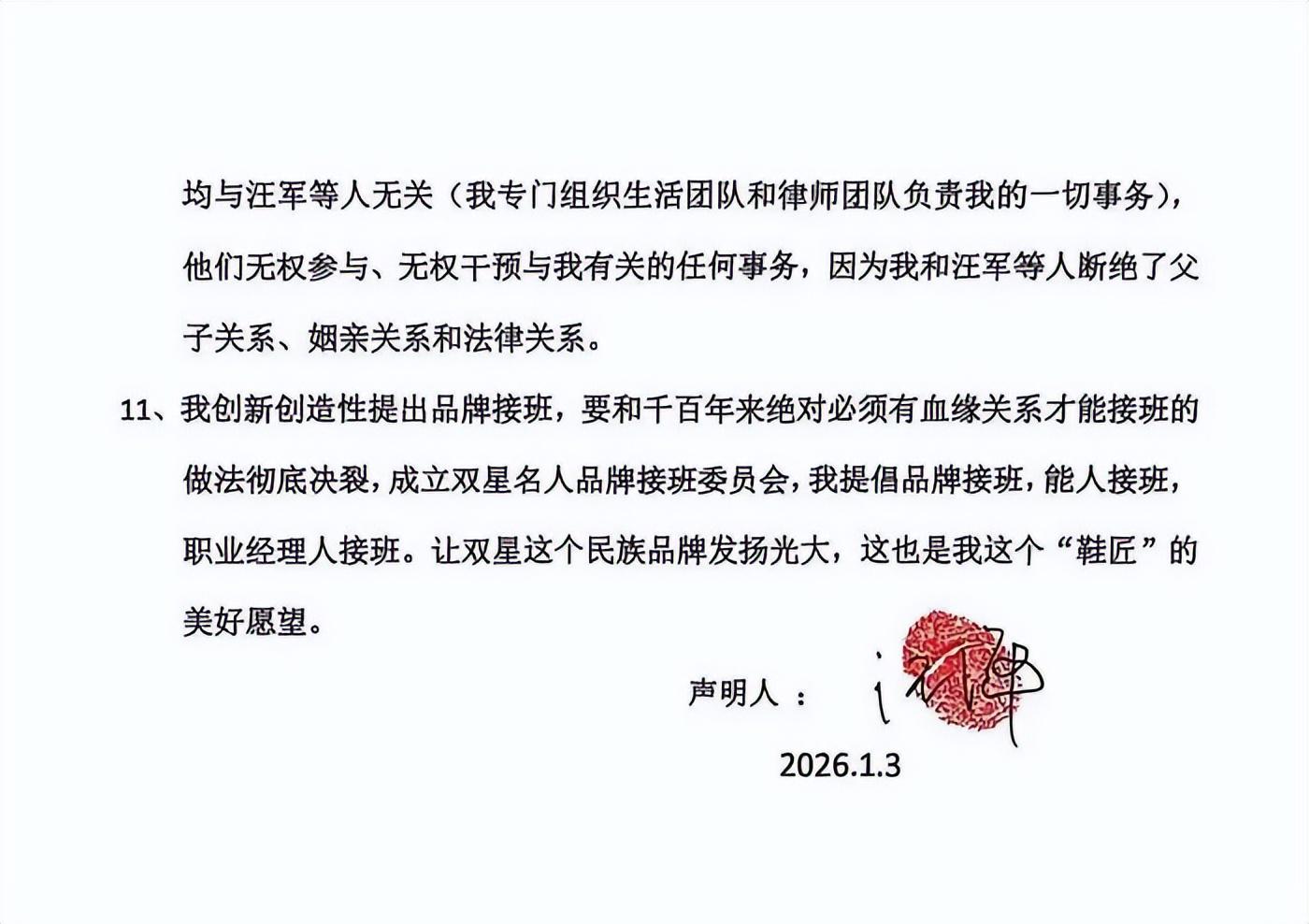面对亲情崩塌,汪海在声明最后祭出“杀手锏”:彻底打破“血缘接班”的传统。他宣布将成立“双星名人品牌接班委员会”,主张“能人接班”和“职业经理人接班”。