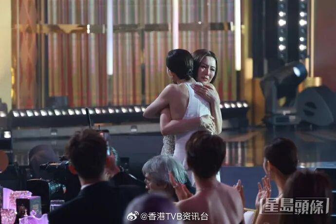 王敏奕获颁“最佳女配角”,先获龚慈恩、佘诗曼在台下拥抱祝贺,而老爷曾志伟更点头露出微笑,认可新抱在剧中的表现。