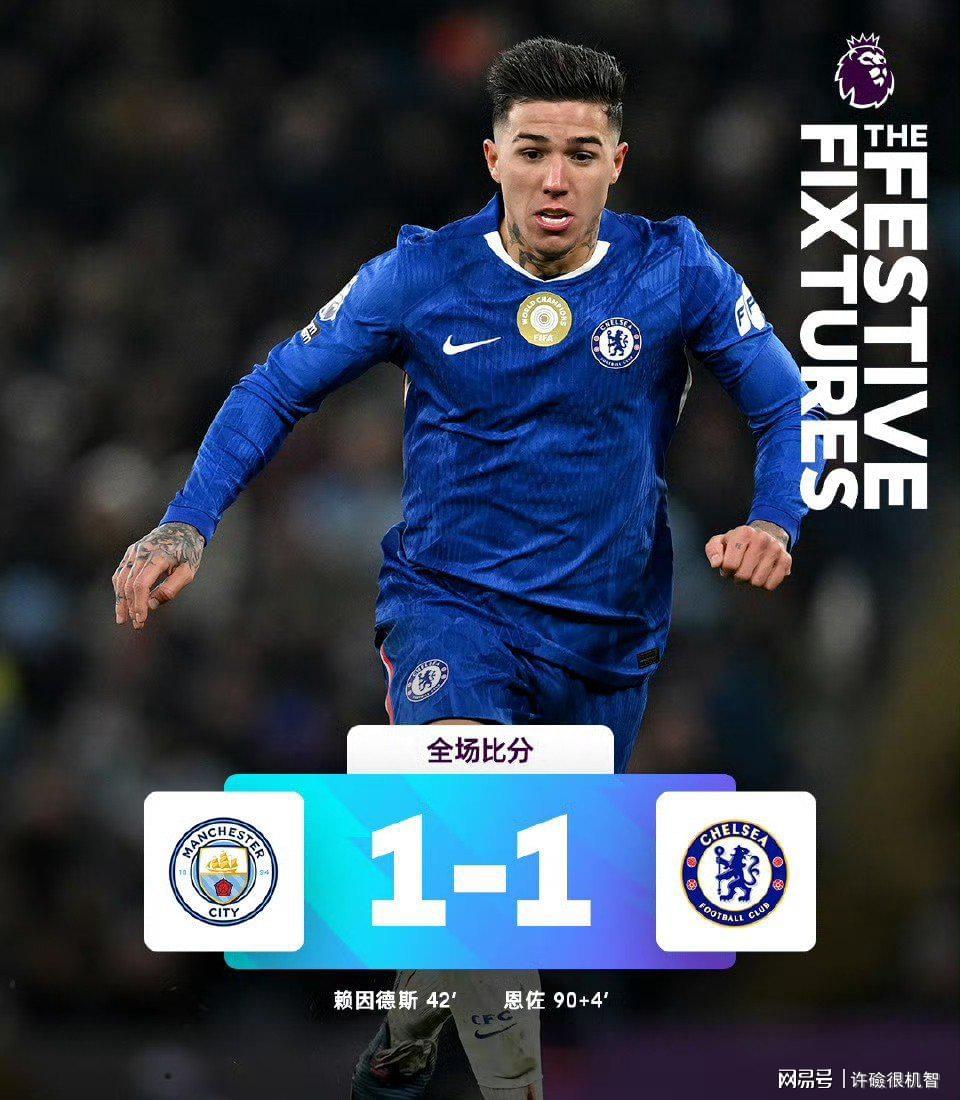 下半场回来后两队开始注重防守,所获机会不多。切尔西这边由帕尔默策动反击,恩佐横传门前,内托直面门将将球打飞,接着哈兰德长途奔袭后起脚打门被挡,第72分钟时多纳鲁马扑出德拉普射门力保球门不失。进入伤停补时读秒时刻,古斯托前场右路传中,恩佐禁区内抢下球捅射破门完成绝平,最终曼城1-1切尔西。