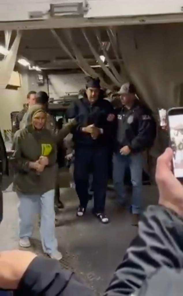 2026 年 1 月 3 日,被美国特种部队逮捕的前委内瑞拉总统尼古拉斯・马杜罗及其妻子西莉亚・弗洛雷斯被押抵美国,这是两人被捕后首次一同公开亮相。在纽约市北部的斯图尔特空军国民警卫基地,戴着手铐的马杜罗身着黑色连帽衫和拖鞋,面对人群和镜头不仅竖起大拇指,还比了个“耶”,神情显得颇为轻松;而身旁的弗洛雷斯则面色阴沉、沉默不语,穿着绿黄相间的连帽卫衣,双手紧握在胸前,在武装特工的包围下被带进安全区域,两人截然不同的状态形成了强烈反差。